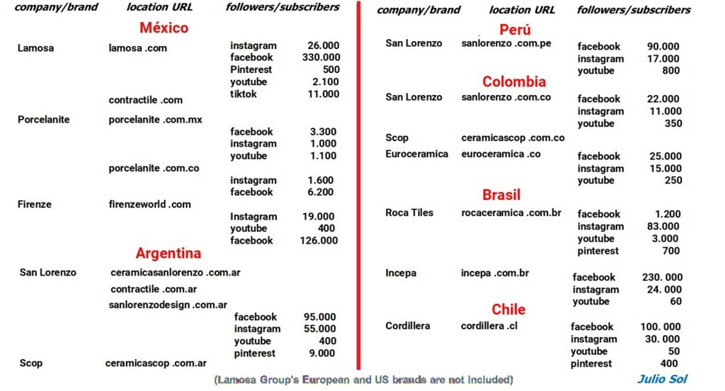 The Lamosa Group’s own online presence (websites) and third-party online presence (social media) are: